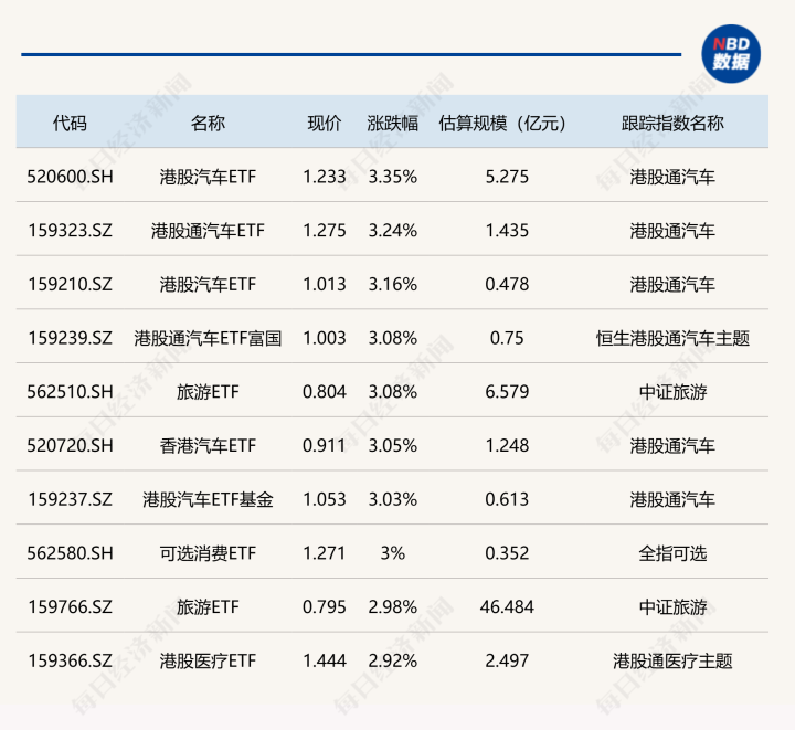 ETF涨跌幅方面,港股汽车相关ETF涨超3%。